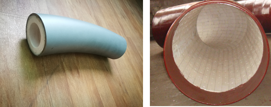 陶瓷耐磨彎頭由各種管徑的直管、彎管、彎頭、變徑大小頭,方圓過渡短節等組成;是利用陶瓷-金屬復合制作技術原理,通過粘接、焊接、鑲嵌、鉚接及套接技術,將各種耐磨陶瓷片、板、磚材料復合在管件內磨損表面,從而形成一個具有優異耐磨性能的表層。