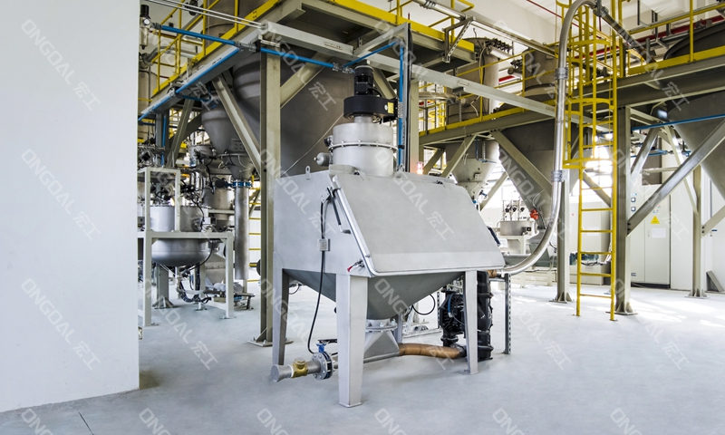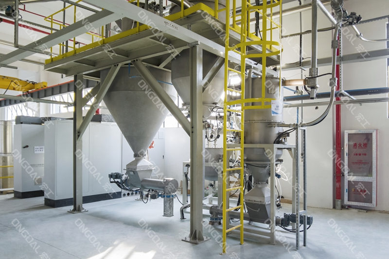 在投料環(huán)節(jié),針對不同物料特性設計差異化處理方案:通過負壓長距離輸送系統(tǒng)有效解決氫氧化鋁高溫物料的輸送安全,利用風冷技術將物料溫度降至工藝要求范圍;氧化鋅與白炭黑采用配備單點除塵裝置的小袋解包站,徹底消除人工投料時的粉塵逸散問題,其中白炭黑更采用隔膜泵輸送技術突破輕質粉體易漂浮的輸送瓶頸。