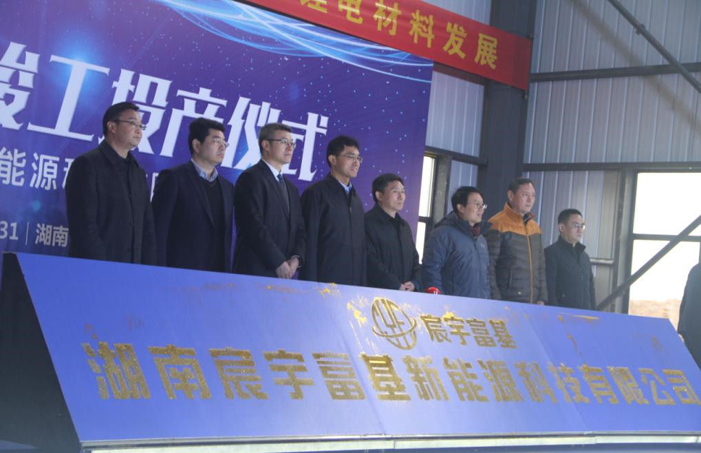 2019年12月31日上午10時許,湖南宸宇富基新能源科技有限公司年產2萬噸鋰離子電池負極材料項目1期工程竣工投產儀式在宸宇富基廠房內隆重舉行,我司董事長羅才華先生受邀列席并作了儀式發言。