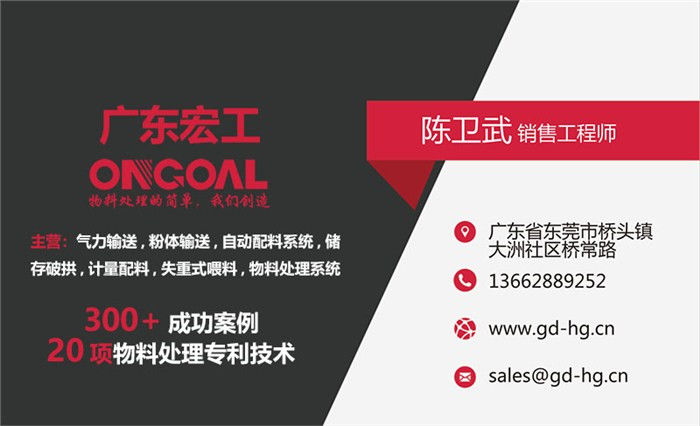 4、廣東宏工所選氣力輸送系統方案合理、簡單、經濟、適用、自動化程度高,在全國各地有大量成績,應用于各行業的 、多個區域地方大中小型電廠、化工、水泥、醫藥等大型企業,廣東宏工設計的粉體輸送設備系統方案,深受客戶的好評,給客戶帶來了巨大的效益。